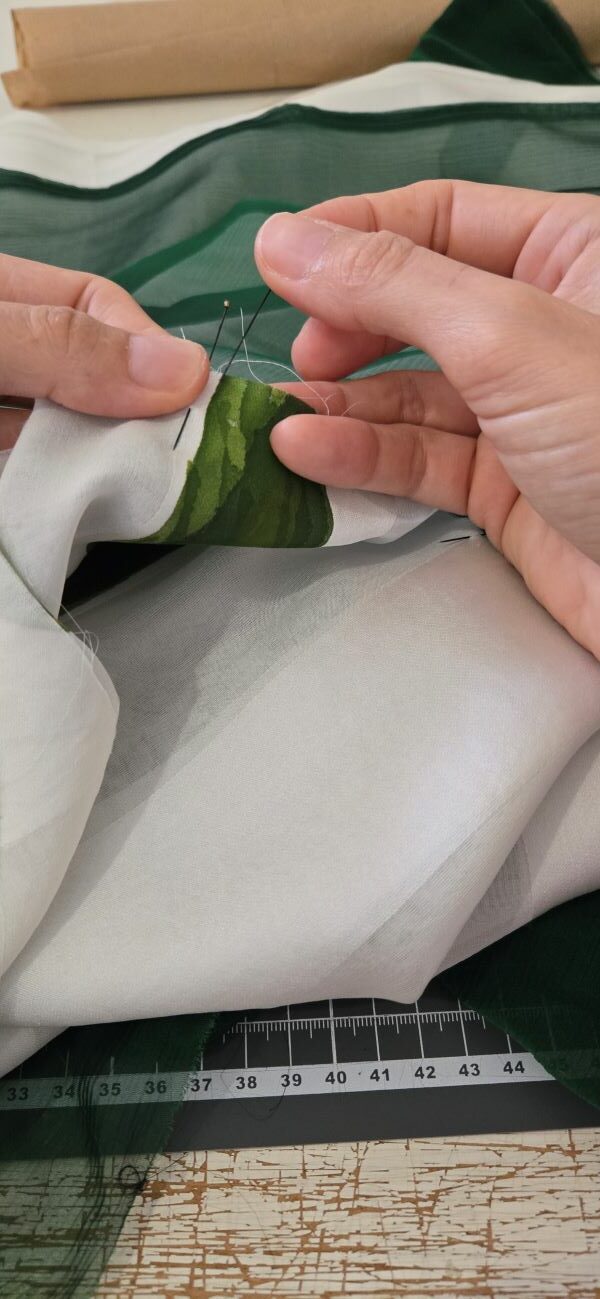 Il est possible de procéder à un lavage main, avec précautions. Ne pas laisser tremper la jupe pour éviter un transfert de la couleur verte sur la partie blanche. Et faire sécher en séparant le côté blanc du côté vert.