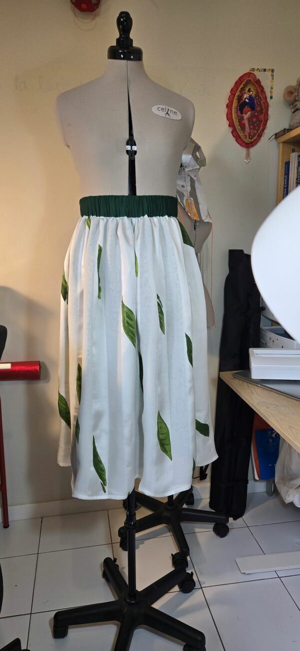 Versa est une jupe en mousseline ruban de soie (2), peinte à la main,